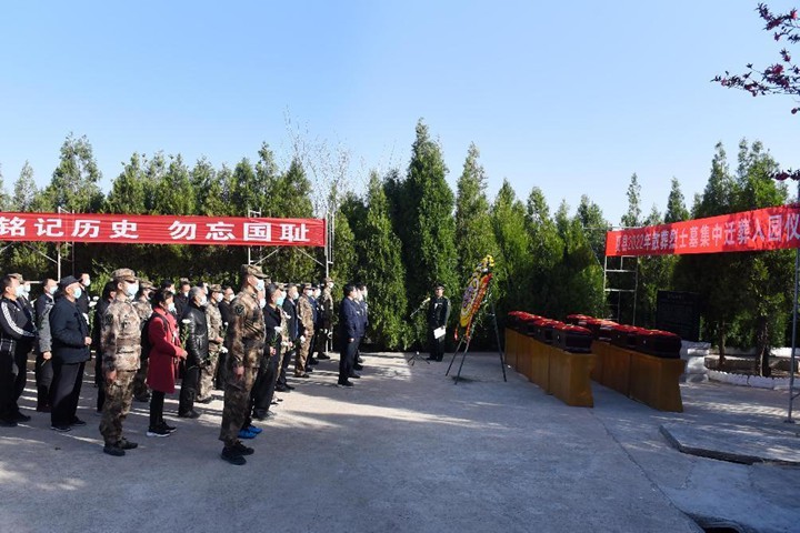 山西日報新媒體記者張馨報道 蒼松翠柏映忠魂,緬懷先烈寄哀思。4月2日,運城市夏縣舉行散葬烈士墓集中遷葬入園儀式,將散葬在該縣各地的9名烈士集中安葬在夏縣烈士陵園,進行統一保護管理和紀念瞻仰,告慰英烈忠魂,激勵子孫后代。