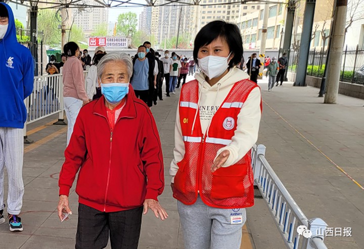 掃碼測溫、信息錄入、引導(dǎo)群眾、搬運物資、現(xiàn)場消毒......“志愿紅”的身影,閃耀在迎澤區(qū)的各個角落,為全員核酸檢測筑起一道暖心防線。