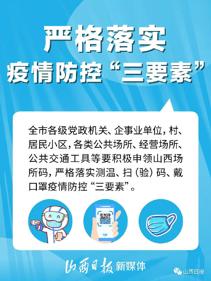 省外返(抵)并人員要提前向?qū)俚厣鐓^(qū)(村)報(bào)備、全市所有大型聚集性活動(dòng)停辦、重點(diǎn)場(chǎng)所逐步放開(kāi)人員接待量……4月22日,太原市新型冠狀病毒肺炎疫情防控工作領(lǐng)導(dǎo)小組辦公室發(fā)布第56號(hào)通告,公布了當(dāng)前疫情防控工作10個(gè)最新要求,以抓好疫情應(yīng)急處置和常態(tài)化防控,努力用最小代價(jià)實(shí)現(xiàn)最大的防控效果。