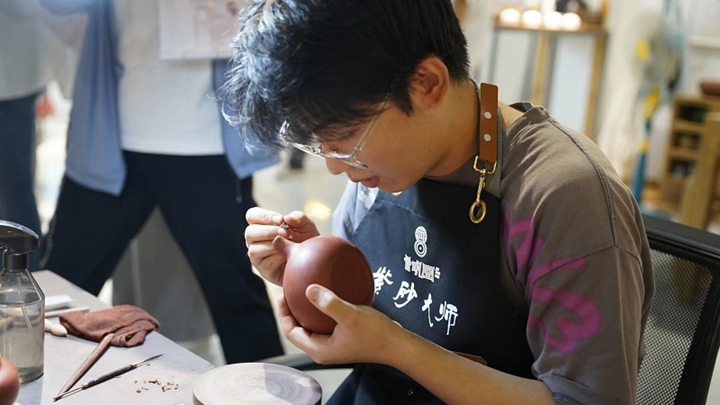 紫砂壺壺嘴部分手工制作。記者楊惠生攝
