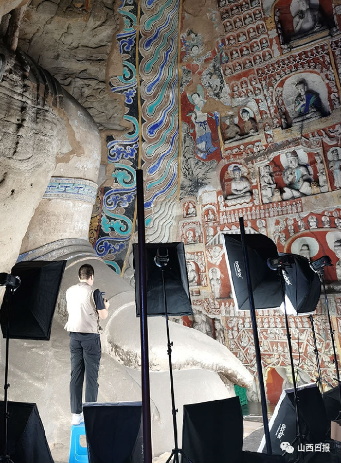 加強數字化文物保護,通過3D打印讓云岡石窟造像行走世界。圖為2021年5月云岡研究院工作人員進行影像數據采集。