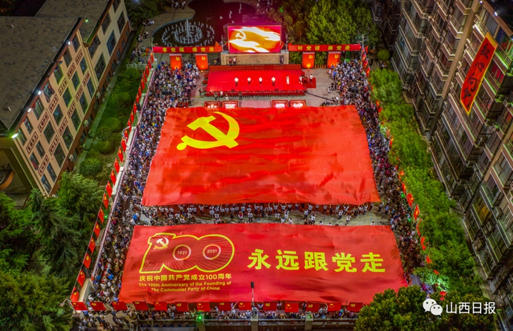 強化黨建引領,積極構建城市基層治理新格局。圖為2021年6月27日,山西省運城市開展“萬人傳遞黨旗、慶祝建黨百年”主題黨日活動。