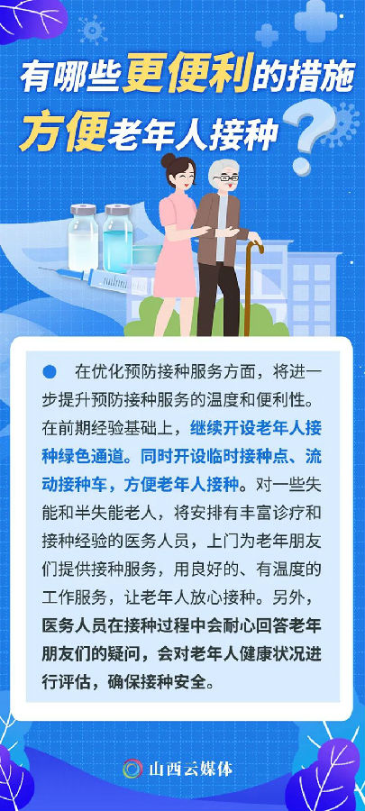 老年人不出門是不是就可以不打疫苗?有沒有更便利的措施方便老年人接種?什么情況下不建議老年人接種疫苗……近日,國務(wù)院聯(lián)防聯(lián)控機制印發(fā)《加強老年人新冠病毒疫苗接種工作方案》,要求進一步加快推進老年人新冠病毒疫苗接種工作,針對老年人群普遍關(guān)注的熱點問題,國家疾控局衛(wèi)生免疫司進行了詳細解答。