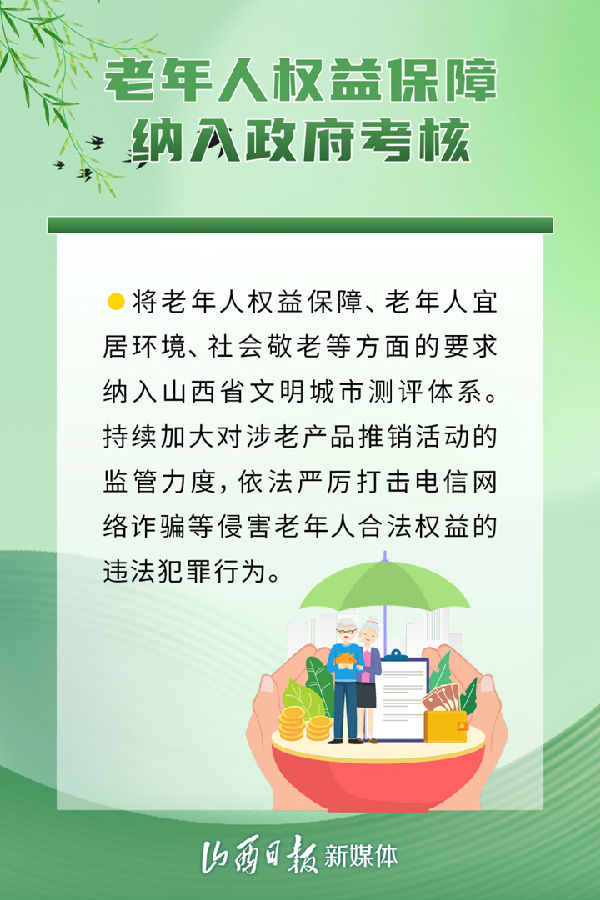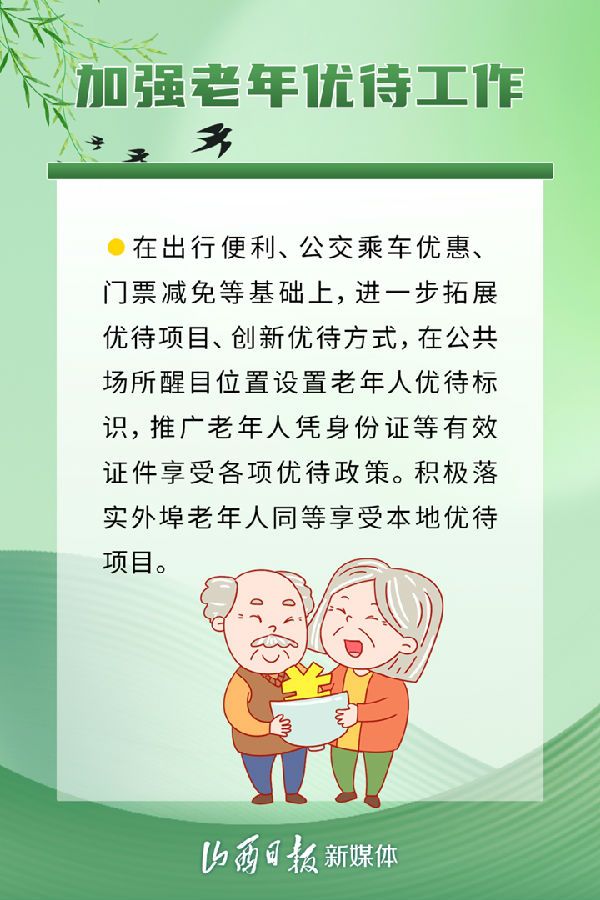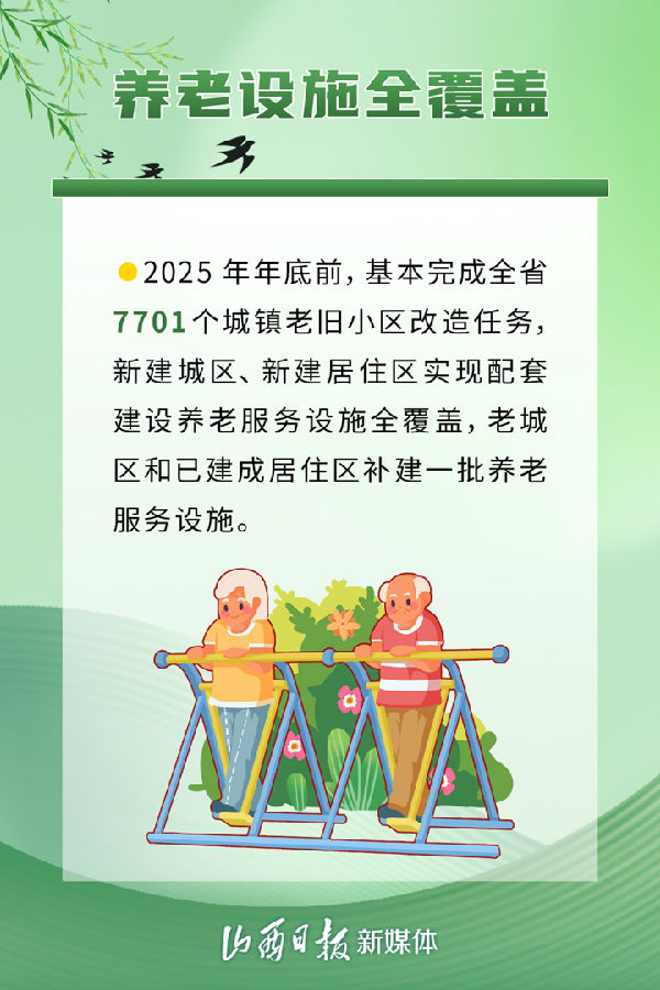 近日,《中共山西省委、山西省人民政府關(guān)于加強(qiáng)新時代老齡工作的實施意見》發(fā)布,從建設(shè)養(yǎng)老設(shè)施、發(fā)展養(yǎng)老機(jī)構(gòu),加強(qiáng)老年優(yōu)待等方面作出部署,推進(jìn)全省養(yǎng)老服務(wù)高質(zhì)量發(fā)展,讓老年人共享改革發(fā)展成果,安享幸福晚年。具體措施有哪些,一組海報了解。