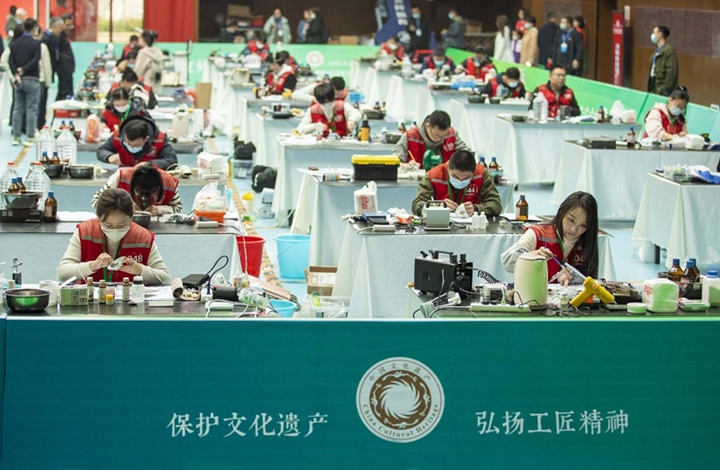 全國文物職業技能大賽比賽現場。人民網記者 王帆攝