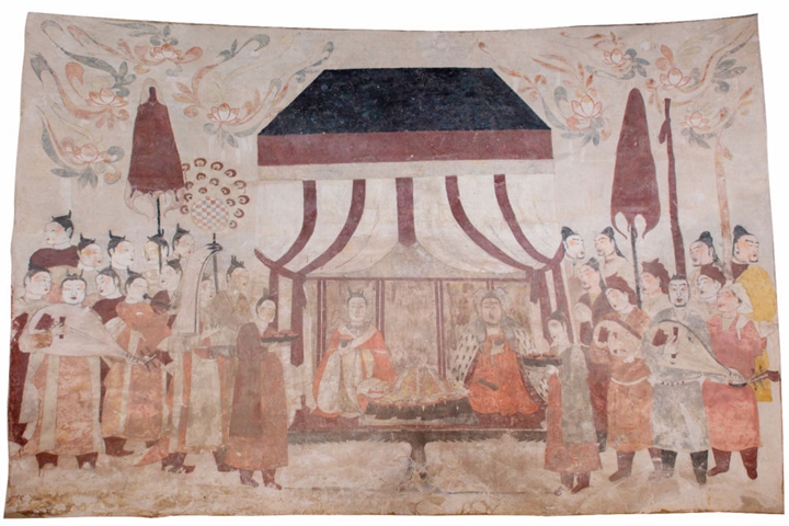這是徐顯秀墓墓室北壁墓主夫婦宴飲圖(資料照片)。新華社發(太原北齊壁畫博物館供圖)