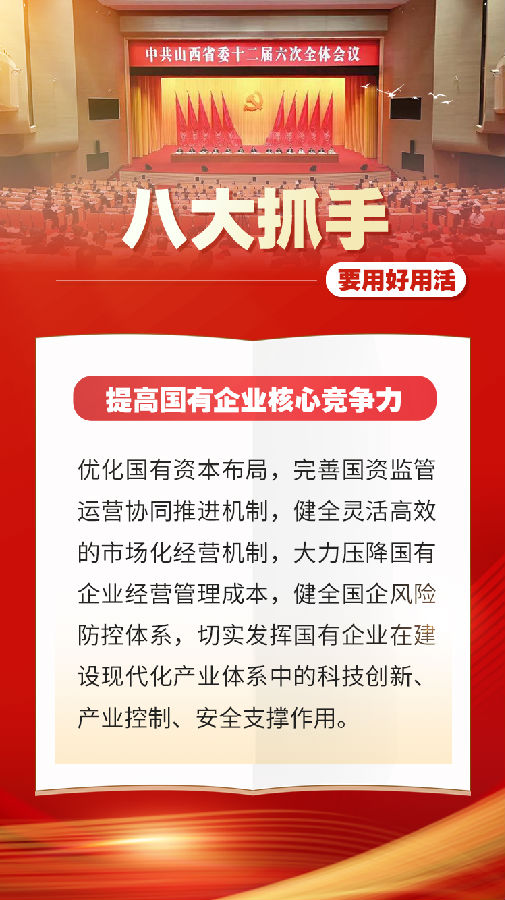 全會明確了進一步加快轉型發展的有效抓手,強調要用好用活八大抓手,加快形成有力推動、有效突破的生動局面。