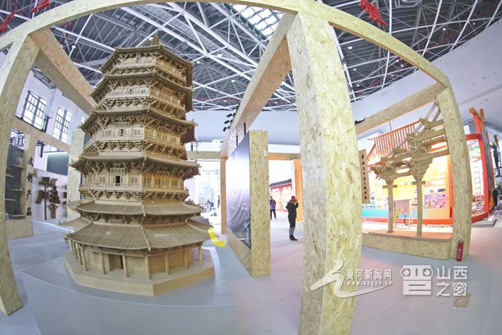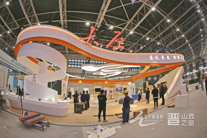 圖為朔州展區。朔州展區已完成大部分搭建工作,后續處理工作仍在緊張進行中。朔州展區內主要設置有右玉旅游生態文化區、應縣木塔文化區以及朔州文創產品和融媒體等內容,展館布展突出朔州地域文化特色,全面展示朔州近年來文化改革發展的重大成就,重點反映出了朔州文化產業的發展成果和前景。錢龍 攝