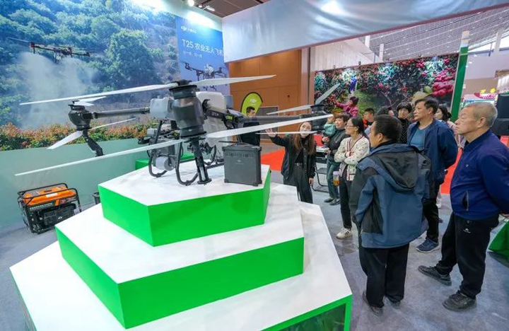 ▲智能雙臂蘋果采摘機器人吸引參觀者目光