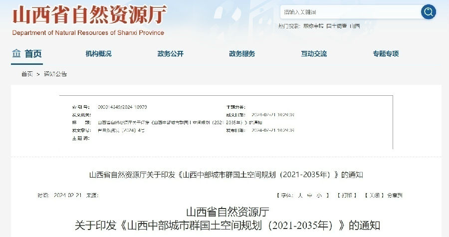 日前,記者從山西省自然資源廳獲悉,《山西中部城市群國土空間規劃(2021-2035年)》(以下簡稱《規劃》)發布。