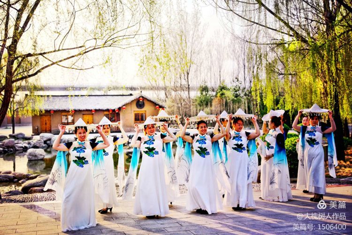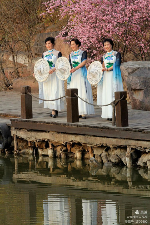 萱樓前、水車旁,到處都是流動的美景,藝術團老師們的表演在影友們長槍短炮的快門聲中被定格,變成一幅幅春天的畫卷。