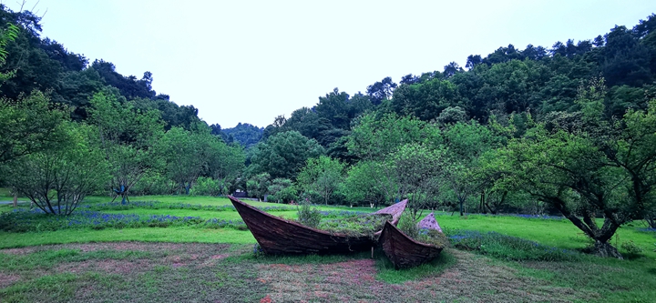 為發展旅游,景區開辟了多條線路,但萬變不離其宗,最經典的還是當年“武陵漁人”走的桃花山那條線路。從那座醒目的“桃花源”牌坊進去數十米,豁然見到兩只小木船擺放在綠蔭的草地上,莫不是當年漁人“緣溪行”留下的捕魚之船?!往前行,路兩旁、山邊全是桃樹,可惜錯過了桃花,不然,這將是我們的一次桃花尋夢之旅。清澈見底的溪水和潺潺的流水聲伴隨我們一路前行,沿途有不少景點,水源亭、臨仙館、悠然亭、高舉閣、歸廬、三然亭、尋契館等等,這些景點最早的建于元代,最晚的也有兩百余年歷史,幾百年來,這些景點毀了又建,建了又毀,但都從原址上重建并保留了下來。可見。旅游與文化在哪個時代都是不可分開的一對雙胞胎。