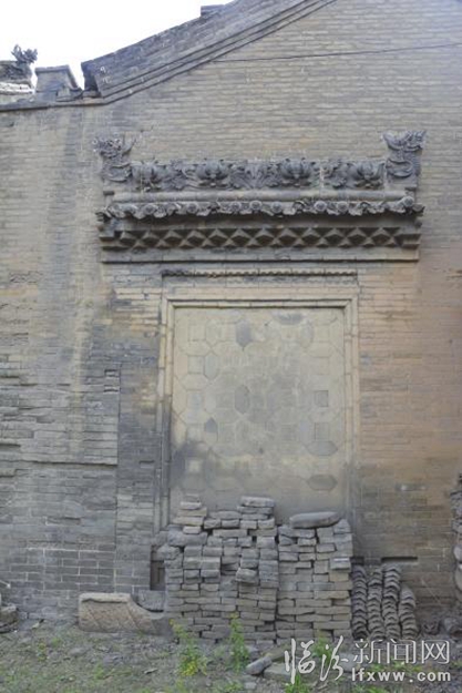 鼓亭長4米左右,寬兩米左右,為磚木結構,背靠西側高大的土墻。鼓亭裝飾精美,最上端為磚雕廈脊,每塊磚上都有雕花,正中有9塊磚,兩側為龍頭圖案。鼓亭呈斜坡向下狀,如一座鑲嵌于墻中的建筑。建筑巧妙別致,在北方大院中設鼓亭的院落并不常見。