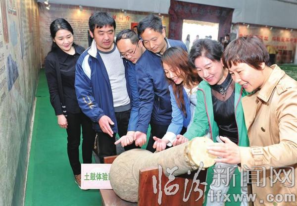 臨汾新聞網訊 4月18日,在襄汾縣陶寺遺址考古發掘成果展上,來自臨汾堯晉商學會的會員在土鼓體驗區欣賞古代器樂。襄汾縣依托陶寺觀象臺、陶寺遺址考古發掘成果展等特色堯文化場所,在做好公益講解、免費參觀的同時,設立特色互動體驗區以及天文觀測區等,讓廣大市民和游客更進一步了解體驗堯文化。