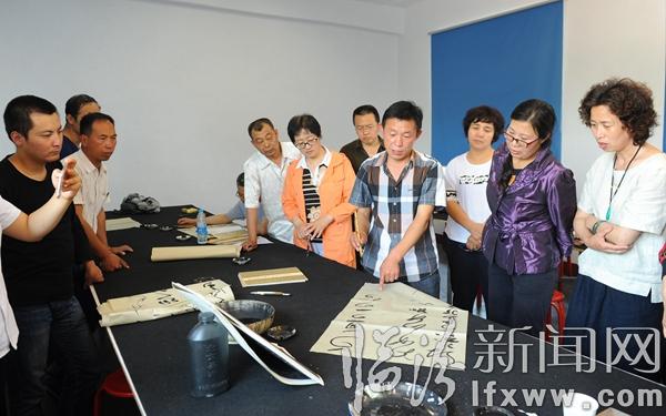 臨汾新聞網訊 日前,在襄汾縣丁村夢池書院,指導老師劉興堯在為書法愛好者講授書法要點。夢池書院在每個星期天開設“書法公益大講堂”,從書法與寫字、優秀書法作品的標準、學習書法、創作與臨摹等方面,對書法知識進行了全面深刻的詮釋,使廣大書法愛好者的書道、書藝、書技全面受益,逐步提升文化素養和欣賞水平。