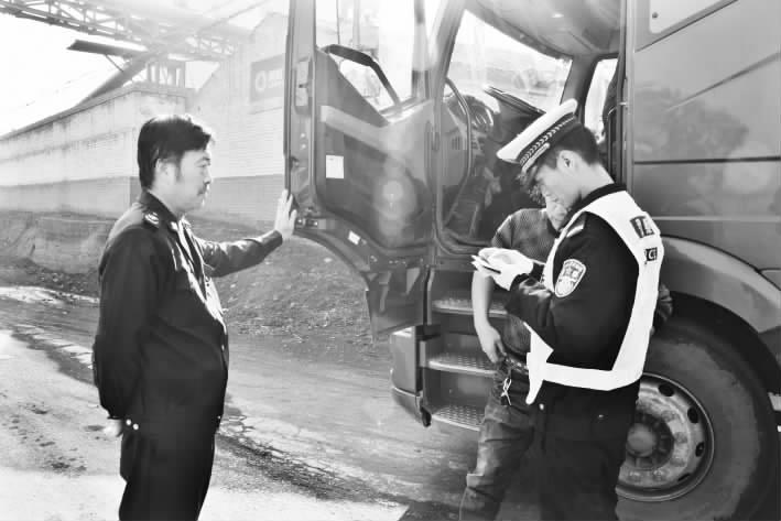 臨汾新聞網訊 入冬以來,襄汾縣組建工商質監、環保、交通運輸、交警四部門聯合執法隊伍,成立了4個煤炭市場整頓稽查隊,采取設卡檢查和巡回檢查的辦法,對全縣范圍運輸散煤車輛進行全天候檢查,嚴禁劣質散煤進入該縣。圖為該縣交警和交通運輸執法人員聯合對過往散煤運輸車輛進行檢查。 王璐 攝