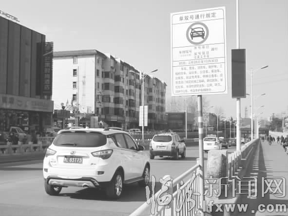 返回城區時,在解放路立交橋橋頭的橋墩上,交警設置了一塊明顯的“單雙號限行”的標志牌,也安裝了醒目的跨路廣告,然而,單號車輛還是時有出現。