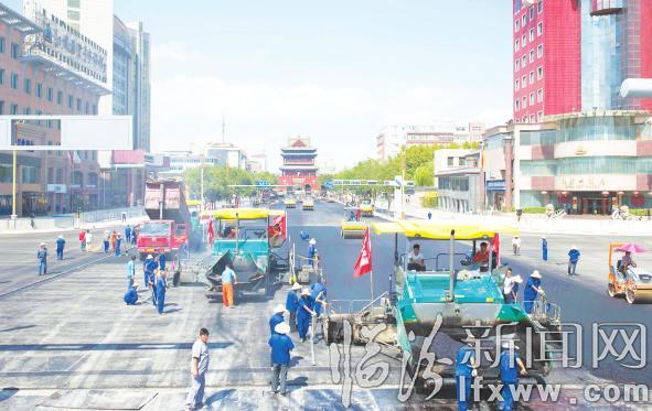 臨汾新聞網訊 日前,鼓樓南北重點改造工程路面鋪設工作已完成了一大半。在建設工地上,車輛如梭、機器轟鳴,工程建設者們激戰正酣,場面顯得尤為壯觀。