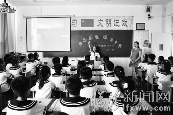 臨汾新聞網訊 日前,堯都區實驗小學積極組織廣大師生以多種形式紀念中國人民抗日戰爭暨世界反法西斯戰爭勝利七十周年,通過各種紀念活動,師生們受到了深刻的愛國主義教育。全體少先隊員面向國旗宣誓:勿忘國恥,不辱使命, 努力拼搏,奮發圖強,學好本領,報效祖國。景捷敏 攝