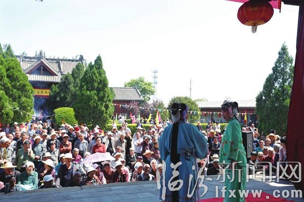 臨汾新聞網訊 5月16日上午,在堯都區魏村鎮牛王廟,十里八鄉的鄉親們正在觀看堯都區蒲劇團表演的《三娘教子》。這是魏村第38屆牛王廟會暨物資交流大會中的一個場景。據悉,該村每年都會自發組織廟會,附近的群眾在這里趕集、聽戲、觀看歌舞表演。