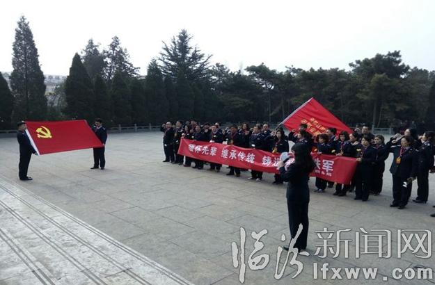 在堯廟革命烈士陵園,全體志愿者們首先列隊向革命烈士鞠躬默哀,并敬獻了花籃。紀(jì)念活動由區(qū)局黨組成員、副局長王素俊同志主持,黨組成員、副局長張書林同志代表黨組作紀(jì)念講話,市場分局王建民書記為大家講述了臨汾解放戰(zhàn)役的經(jīng)過, 讓大家重新了解了當(dāng)年在徐向前元帥的指揮下,發(fā)生在平陽大地上的那場戰(zhàn)役,在臨汾人民的全力支持下,我晉冀魯豫軍區(qū)部隊對固守臨汾城的國民黨軍隊發(fā)起攻擊,用熱血和生命換來了古城平陽的解放和新生,志愿者們被革命先烈們的光輝業(yè)績和偉大精神所深深感動 。面對鮮紅的黨旗,由收入核算科張延勤同志帶領(lǐng),全體志愿者高舉右手,重溫入黨誓詞,再次表達(dá)對黨的忠誠和堅定的理想信念。