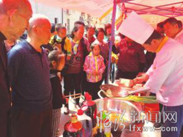 臨汾新聞網訊(記者成華)美食進社區,香飄千萬家。4月21日上午,市區教授花苑小區內,香味四溢、熱鬧非凡。由我市餐飲服務管理中心舉辦的“味道·臨汾美食進社區”活動走進該小區,名廚烹飪的家常菜讓社區居民大飽口福。