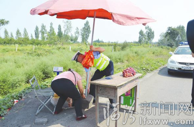 據了解,在堯都區土門鎮路段種植提子的村民較多,隨著水果成熟季節的到來,周邊村民將水果攤點直接擺到公路上兜售。民警現場向村民講解了在公路上占道擺攤的危害和隱患,并幫村民將攤位移出公路界外,消除安全隱患。