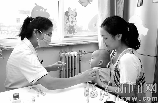 臨汾新聞網(wǎng)訊 9月24日,在堯都區(qū)南街社區(qū)衛(wèi)生服務(wù)中心,工作人員在為轄區(qū)的兒童接種疫苗。堯都區(qū)南街社區(qū)衛(wèi)生服務(wù)中心在做好“規(guī)范接種疫苗,共建健康平陽”活動中,通過對轄區(qū)適齡兒童和流動人口家庭兒童建立健康檔案等措施,普及疫苗接種的相關(guān)知識,指導(dǎo)年輕父母了解預(yù)防接種的重要性,及時給孩子接種疫苗。