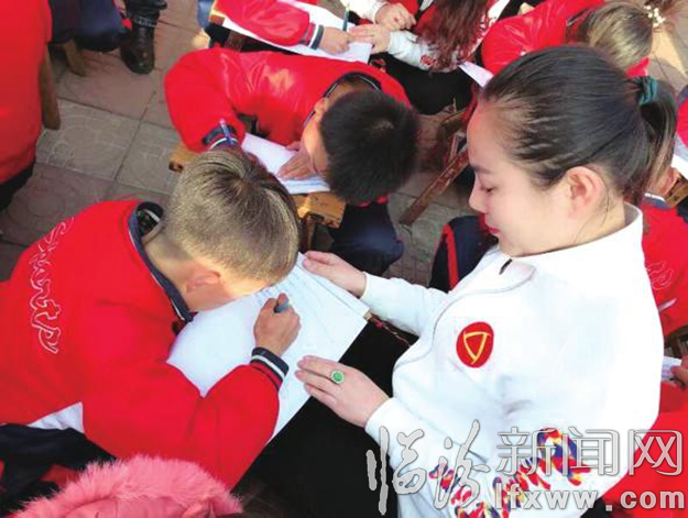 臨汾新聞網訊 12月18日,由大愛臨汾公益聯盟組織的暖冬公益行動走進堯都區劉村鎮北劉學校,捐助了20名孤兒、事實孤兒及家庭困難兒童。愛心團隊不僅給孩子們帶來了羽絨服、鞋子、水杯、書包等學習用品,還同孩子們進行了一系列團體活動和心理游戲。圖為志愿者啟發孩子們寫出自己的新年愿望。