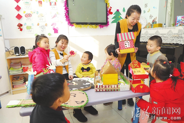 臨汾新聞網訊 “快過年了,我給小鳥做了一個新房子,希望小鳥在里面快樂地生活。”12月27日,記者在堯都區十棟樓幼兒園看到,這里的老師和孩子們將一些廢舊的紙箱制作成一個個精美的小房子、小玩具、小動物,他們用這樣的活動迎接新年的到來。