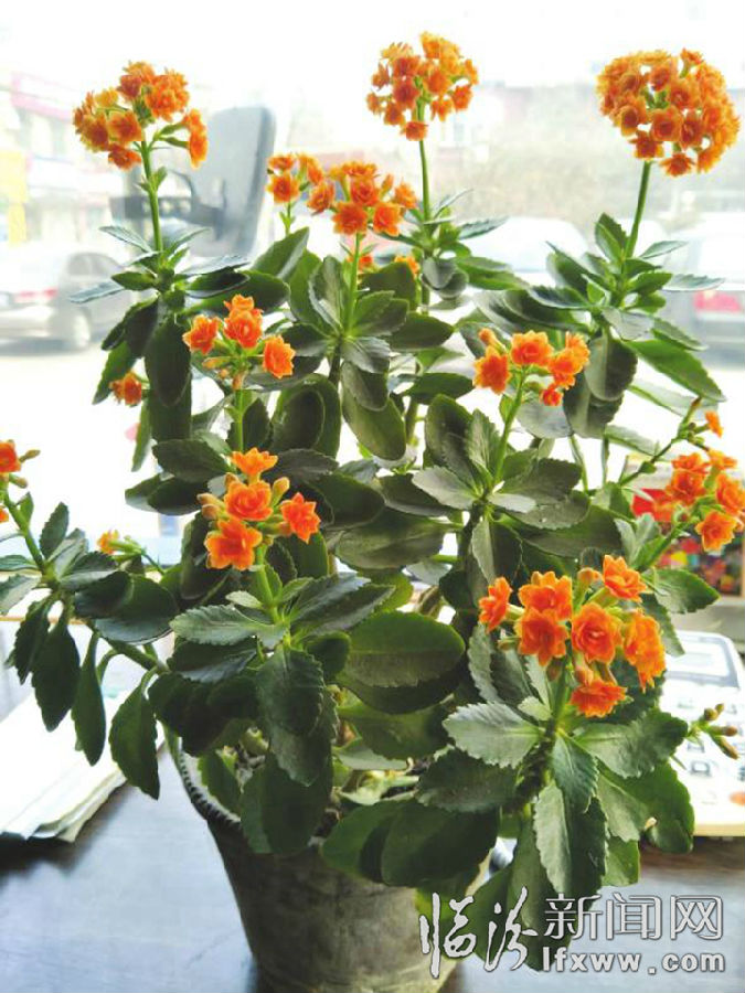 李女士家的長壽花已經(jīng)栽植多年,每年冬天萬花凋謝的時候,長壽花就次第開滿了花枝。該長壽花高30厘米左右,葉片多肉,顏色翠綠,橙紅色的花兒點綴其間,異常美麗。花枝有十五六個,每個花枝上均次第開滿了花,有的花開正艷,有的含苞怒放,有的還是花骨朵兒,最大的一個花枝上開花20余朵。而她養(yǎng)的另外一盆花,不僅顏色不同,而且花序少,開花也少。