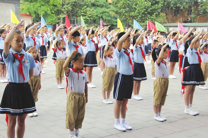 當天,302名一年級學生光榮入隊,戴上了紅領巾。新老隊員在鮮艷的隊旗下莊嚴宣誓,展示出新時期少先隊員樂觀、積極向上的精神風貌。