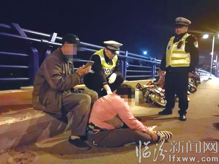 5月8日晚22時40分許,該大隊三中隊隊長張戰(zhàn)良帶隊在濱河西路彩虹橋西路段開展酒駕專項整治夜間統(tǒng)一大行動時,聽到有人高聲求救。民警立即循聲音方向沖到彩虹橋上,只見一名中年婦女倚靠在大橋欄桿上大聲哭喊,情緒十分激動,附近還有一駕駛電動車的中年男性不斷地高呼“有人跳河,快救人”,張戰(zhàn)良立即安排幾名民警疏導(dǎo)交通,并示意另外兩名民警悄悄上前,趁其不備將意欲輕生的婦女從大橋欄桿上解救下來。為了避免刺激當(dāng)事人,張戰(zhàn)良安排民警立即疏散圍觀群眾,并和該名婦女的丈夫一起對其進行勸導(dǎo)。