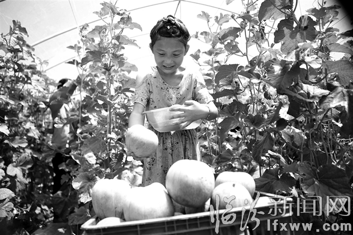 臨汾新聞網(wǎng)訊 近日,一位小朋友在堯都區(qū)段店鄉(xiāng)北練村和順達(dá)農(nóng)業(yè)生態(tài)園里采摘甜瓜。該生態(tài)園靠種植新品種甜瓜,晚熟錯(cuò)峰甜瓜,在市場(chǎng)贏得競(jìng)爭(zhēng)份額。今年種植的9個(gè)大棚甜瓜,每個(gè)大棚預(yù)計(jì)收入2萬(wàn)余元,僅此甜瓜一項(xiàng)預(yù)計(jì)收入可達(dá)20萬(wàn)元。