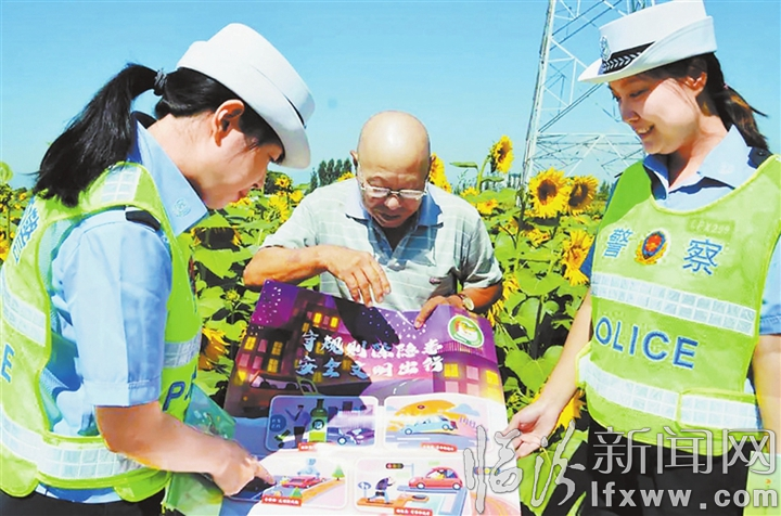 臨汾新聞網訊 近日,堯都區公安局交警大隊民警在轄區村莊宣傳交通法規知識。連日來,該大隊結合轄區農村道路實際,開展“暢行安全路,幸福奔小康”進村入戶秋季交通安全宣傳活動,向村民宣講騎摩托車、電動車不戴安全頭盔以及違法載人等交通違法行為的危害,引導群眾不占道曬糧、揚塵,避免引發交通事故。