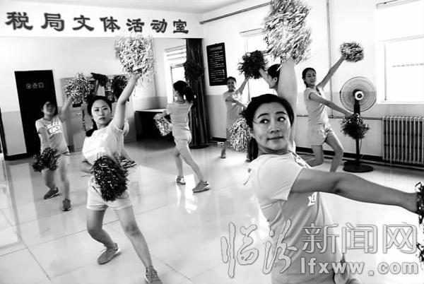 臨汾新聞網訊 日前,隰縣總工會、團縣委組織了籃球比賽,隰縣地稅局女稅干利用工作之余積極排練拉拉舞,成為賽場上的一道亮麗風景線。 石書民 攝