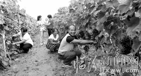 臨汾新聞網(wǎng)訊 近日,翼城縣里砦鎮(zhèn)天馬村村民樊技實(shí)正在和家人收獲葡萄。天馬村大力調(diào)整產(chǎn)業(yè)結(jié)構(gòu),先后發(fā)展優(yōu)質(zhì)蘋果500畝,發(fā)展優(yōu)質(zhì)葡萄1000畝,農(nóng)民收入穩(wěn)步增加。 記者 李自強(qiáng)攝