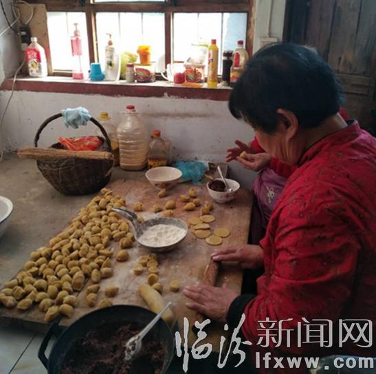 在史伯村,鄰里關(guān)系分外親近,逢年過節(jié)或者誰家辦事,大家都彼此幫襯。今年65歲的牛阿姨正在和鄰居湊在一起做油炸糕,她一邊熟練的搟著面片,一邊介紹著這種食物,“用玉米面做皮,紅豆沙做餡,得包滿嘍,味道才好。”大家一起說說笑笑,金黃的油炸糕就出爐了。油炸糕個兒小、皮兒薄,吃起來外脆里嫩。牛阿姨說小時候她總是看家里的長輩們在過年的時候做這些東西,印象中它們一出場就預(yù)示著新年來了。“當(dāng)時大家條件都不好,只有過年的時候才能吃到油炸糕,看到這黃澄澄的東西就覺得喜慶。”牛阿姨笑呵呵地說:“這種習(xí)慣一輩一輩傳了下來,就成了過年的儀式。”