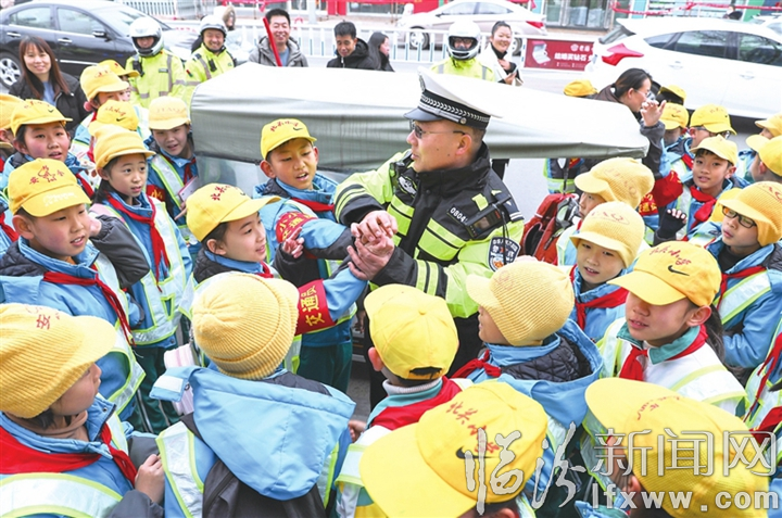臨汾新聞網訊 今年以來,翼城縣公安局交警大隊豐富創新交通安全宣傳形式,把體驗式教育模式引入中小學生交通安全宣傳教育體系,通過課堂教育與跟隨交警現場執法體驗相結合,切實提升中小學生“知行合一”的交通安全意識。 圖為近日,翼城公安交警在組織縣城北關小學師生開展體驗式交通安全學習教育。