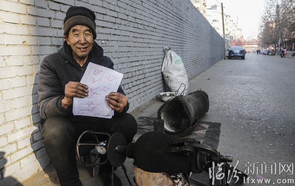 “能干就多干點,不給子女增添負擔。”喬師傅說,他今年67歲了,是堯都區大陽鎮北帝村人,膝下一兒一女,十分孝順,但是他熱愛這個行當,每天9時許開始出攤,走街串巷,沒有固定的經營場所,收入還不錯,一天下來大概能百八十塊錢,足夠他和老伴生活。“2016年我和老伴都生病住院花費了一萬多元,國家政策好,農村醫療報銷了四千多元,沒跟孩子要一分錢。”喬師傅自豪地說。